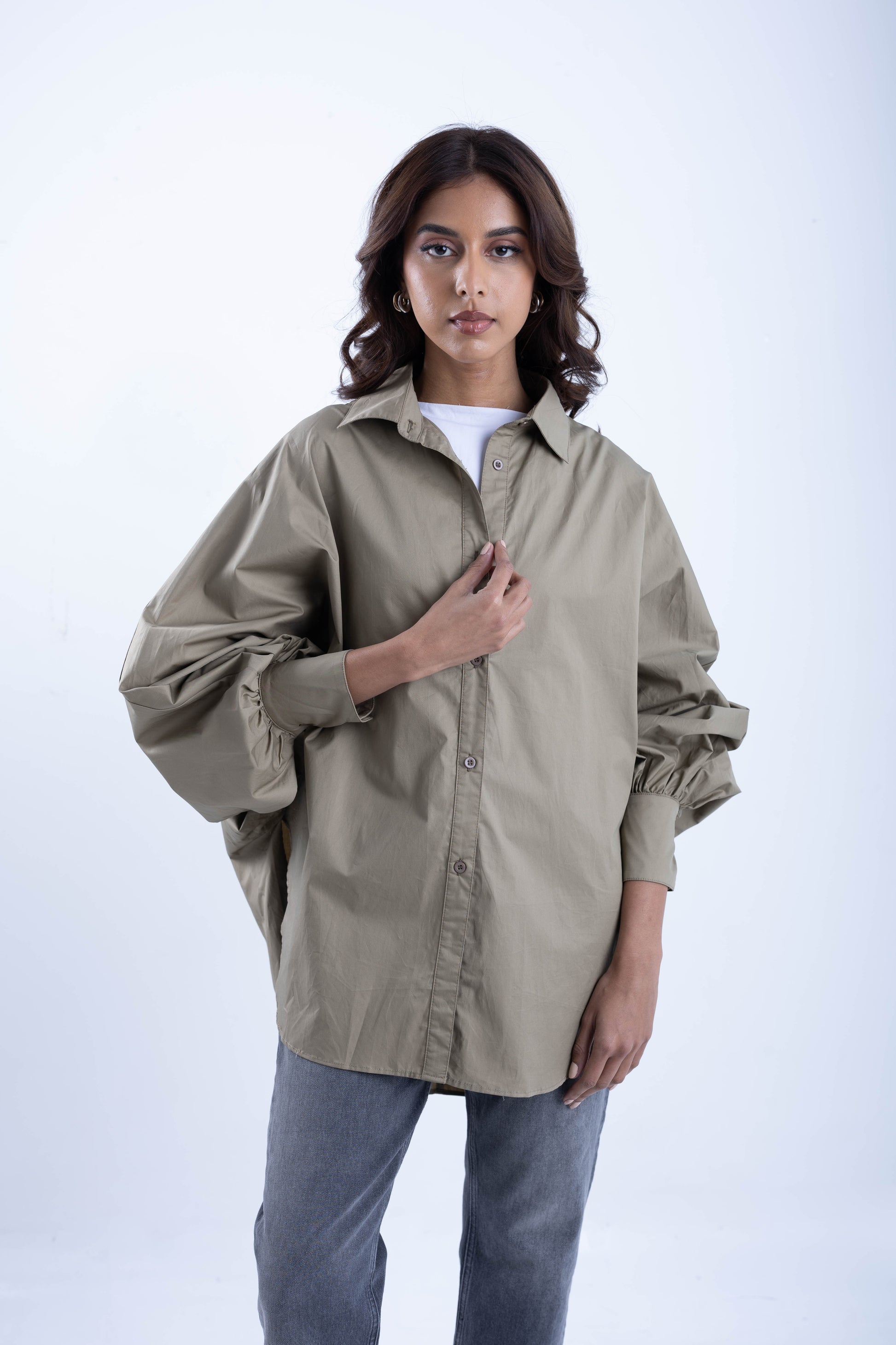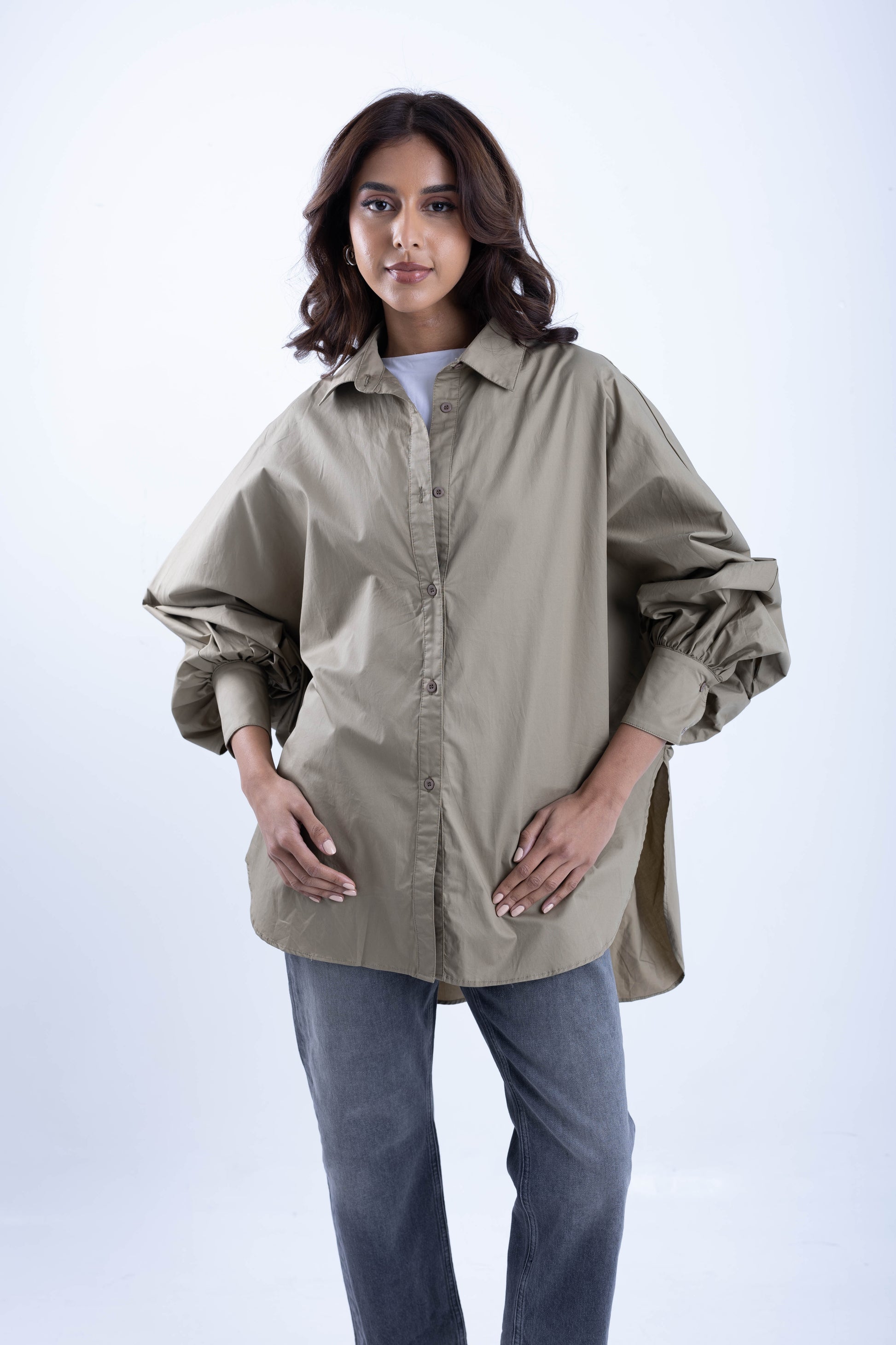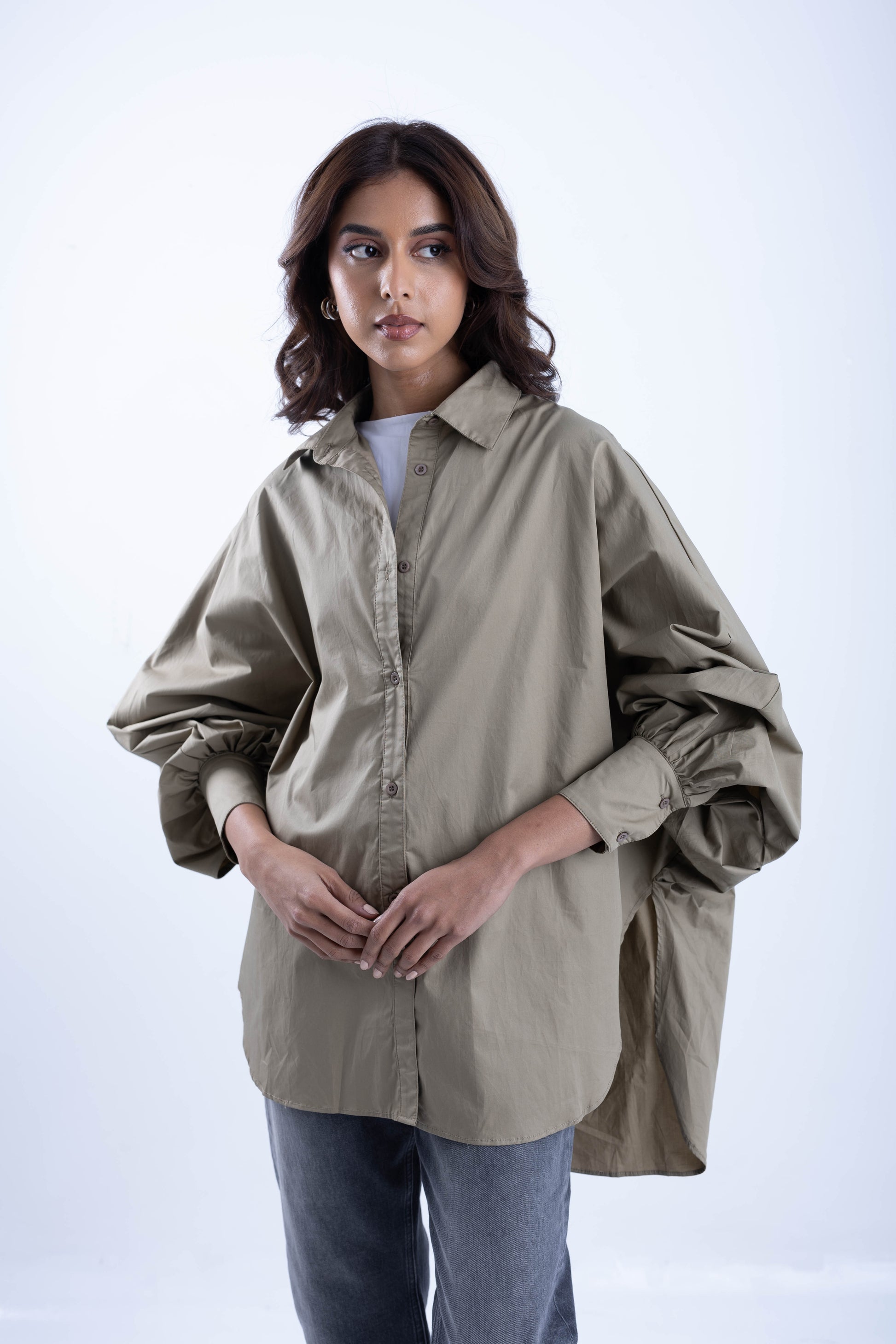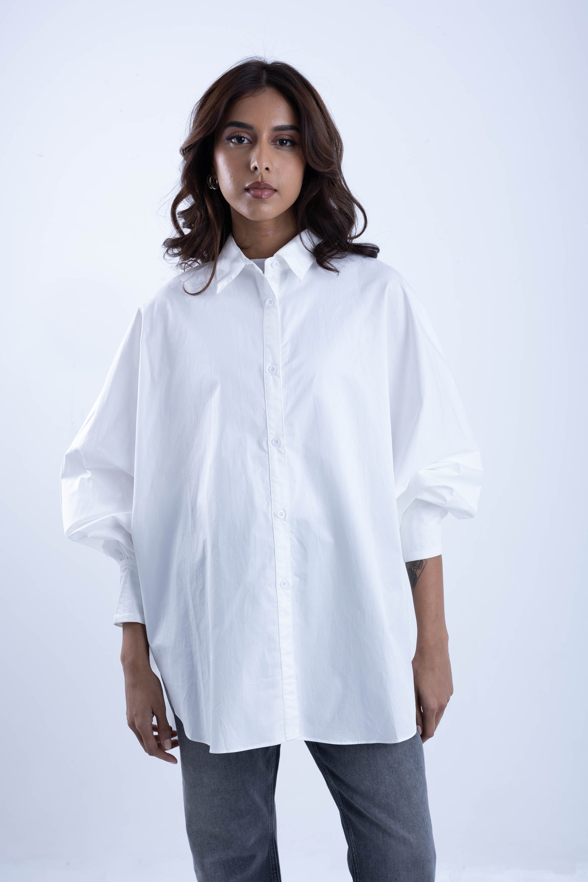 Wide shirt with tight sleeves