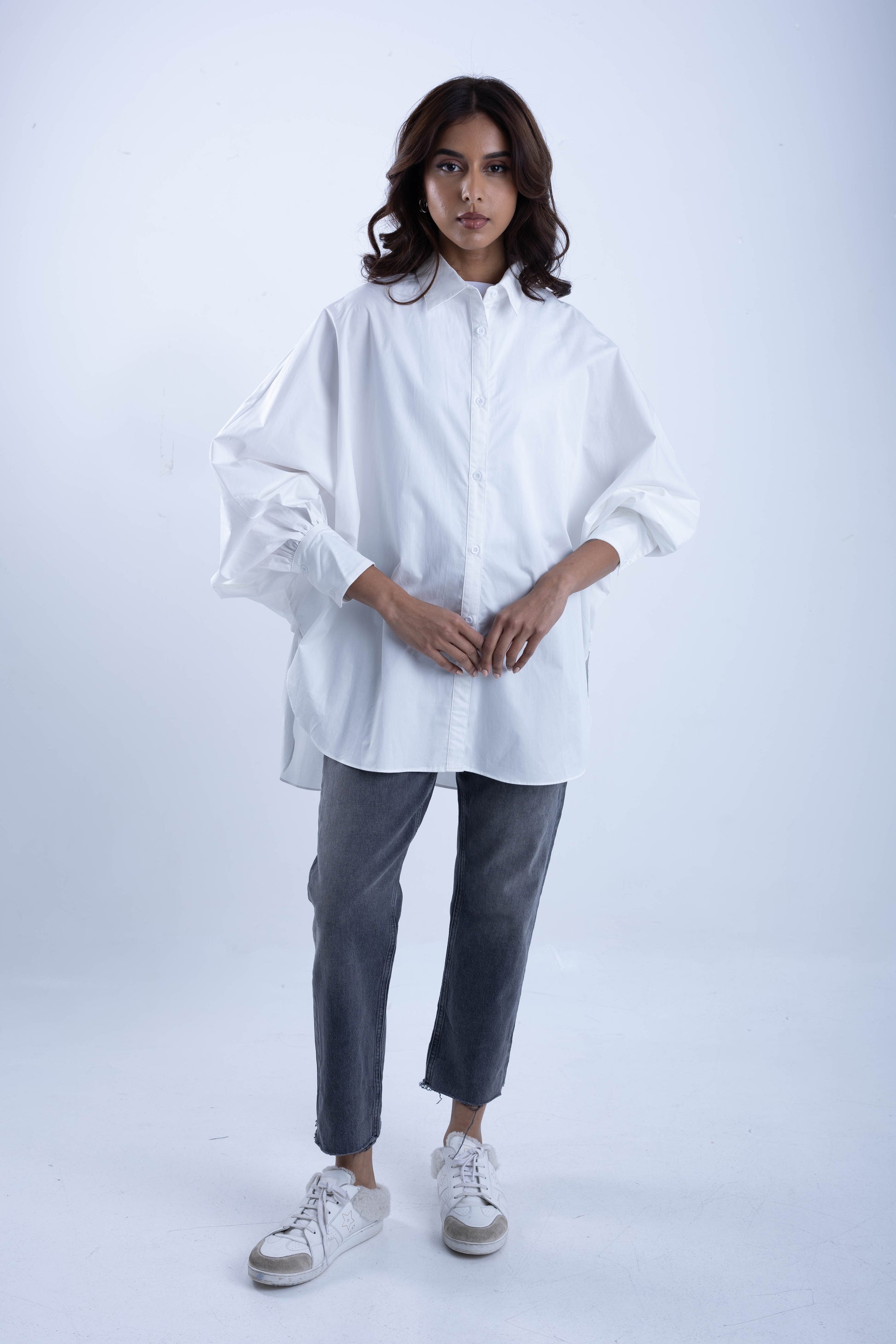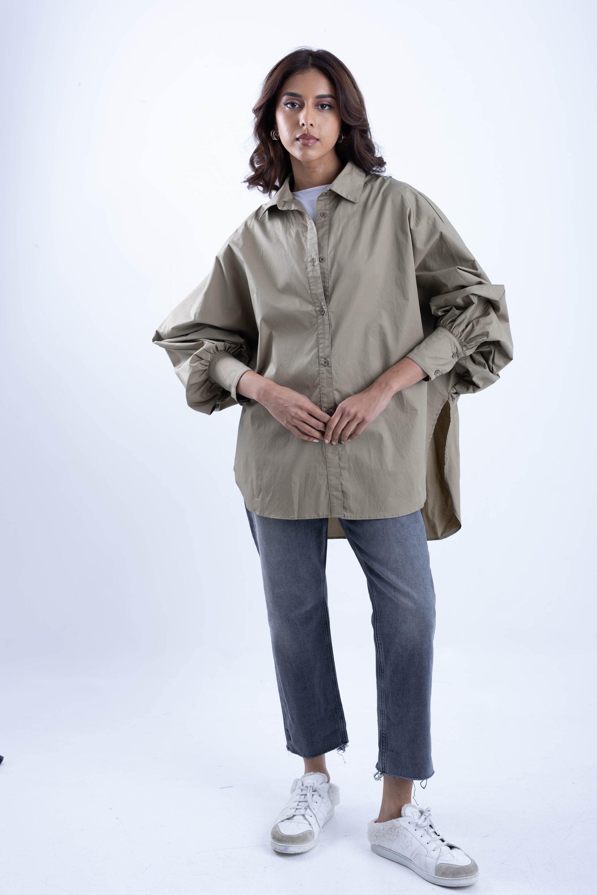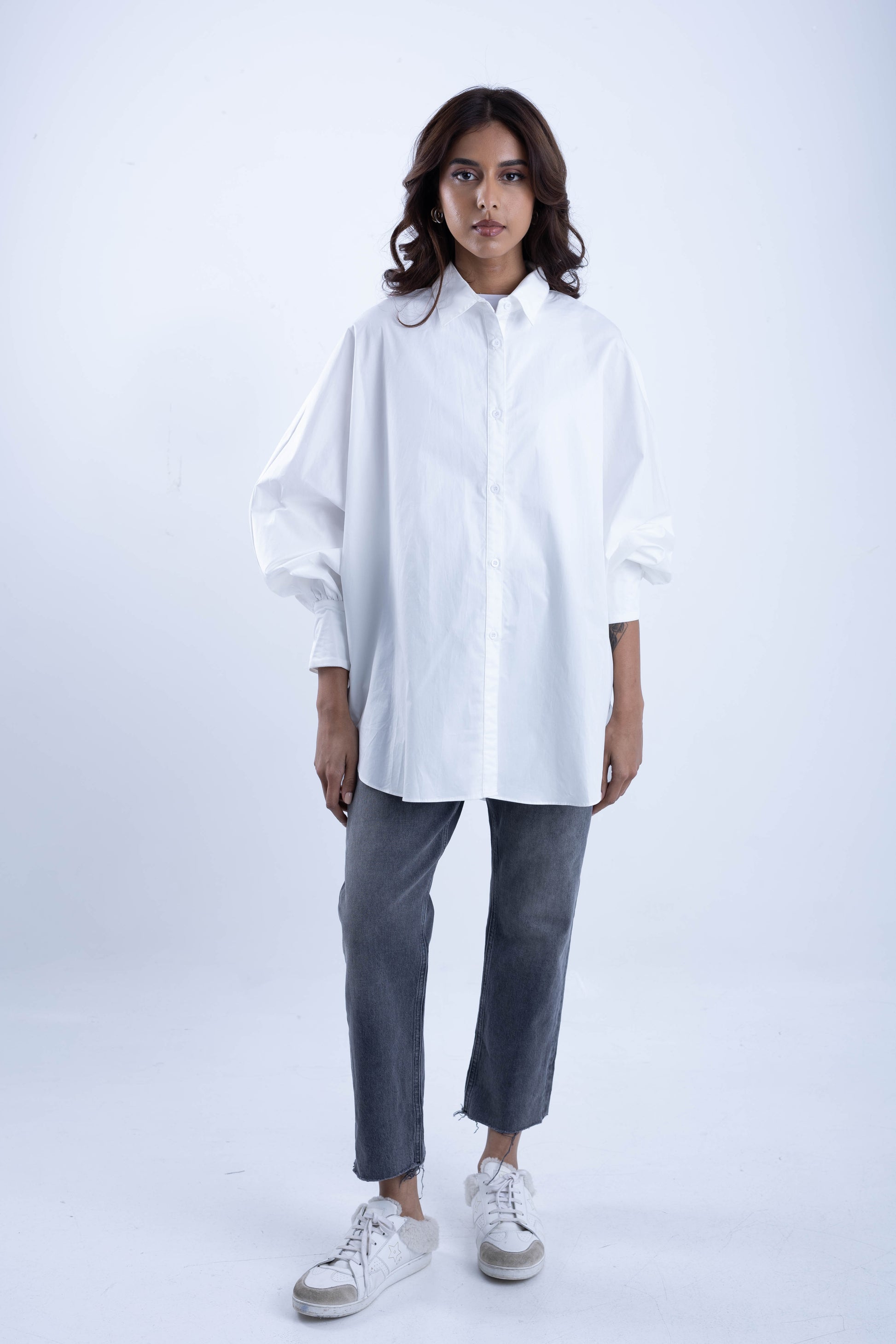 Wide shirt with tight sleeves