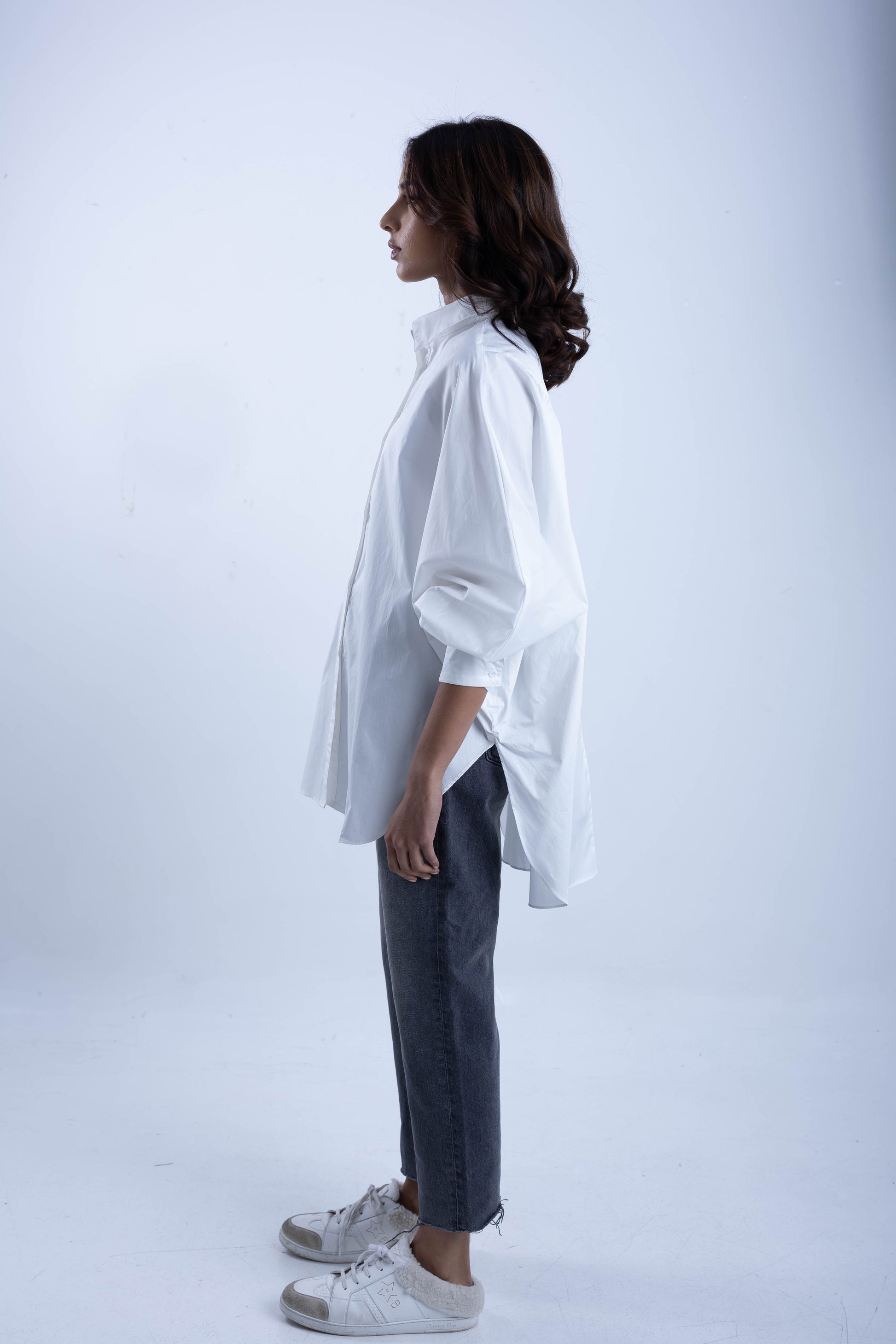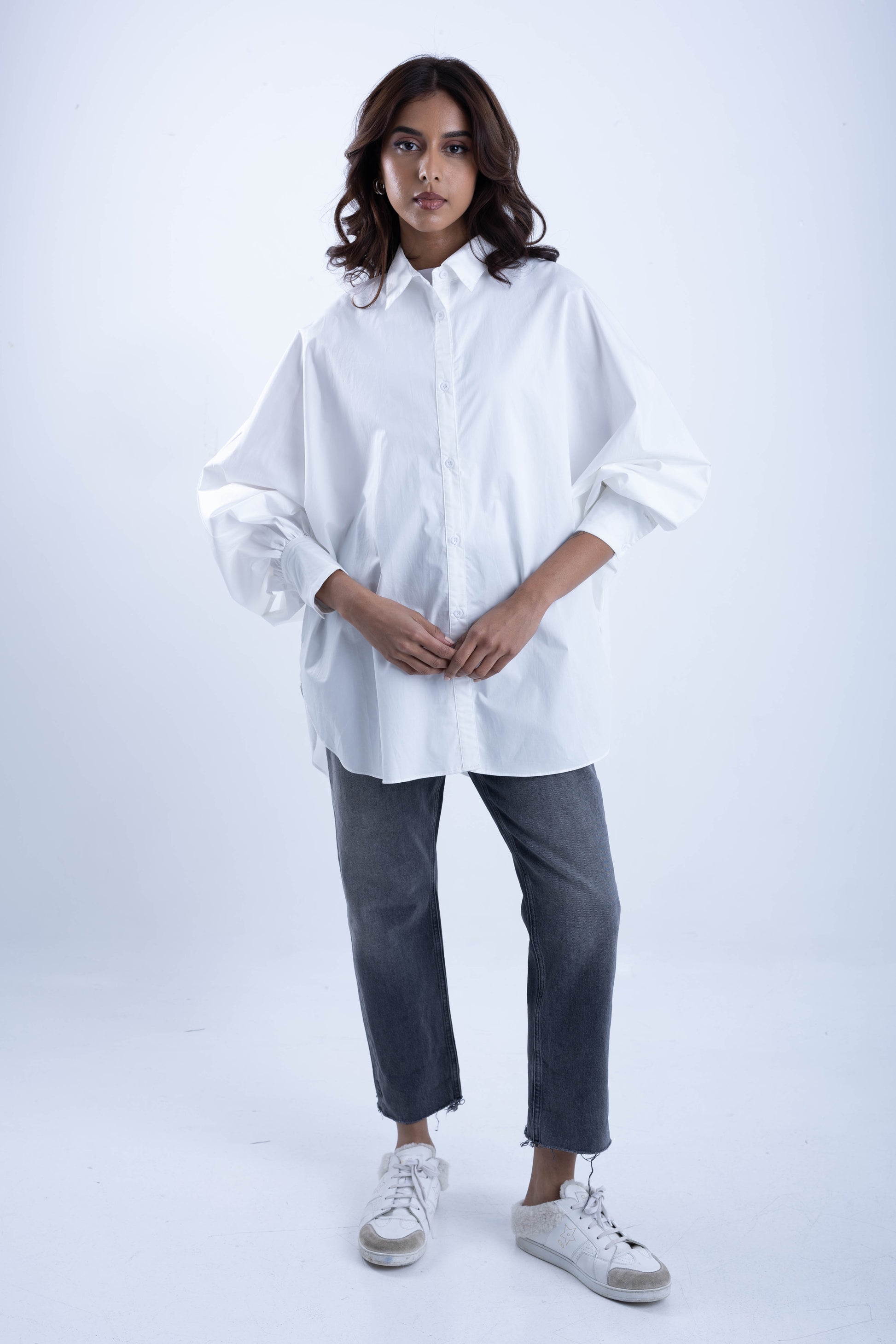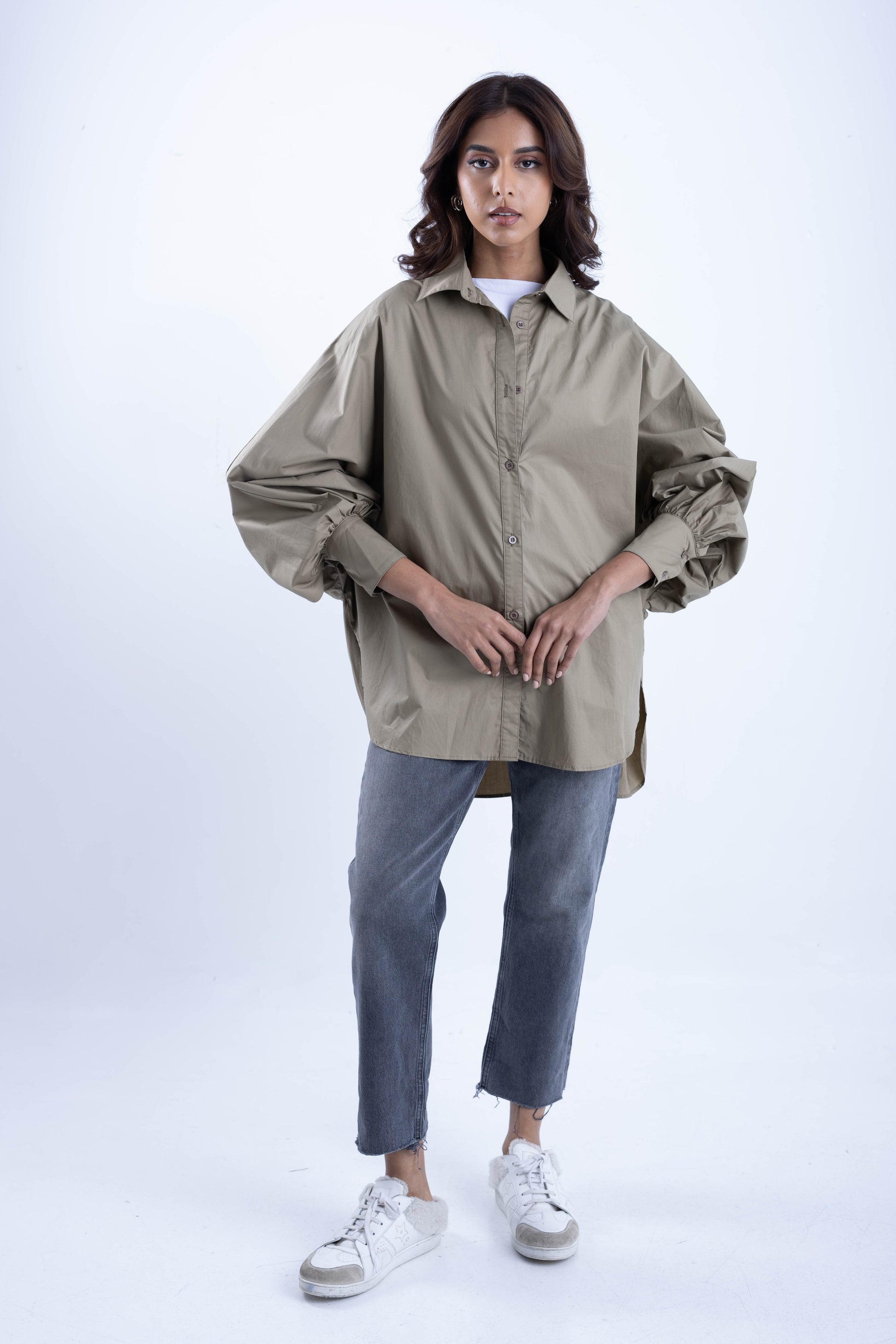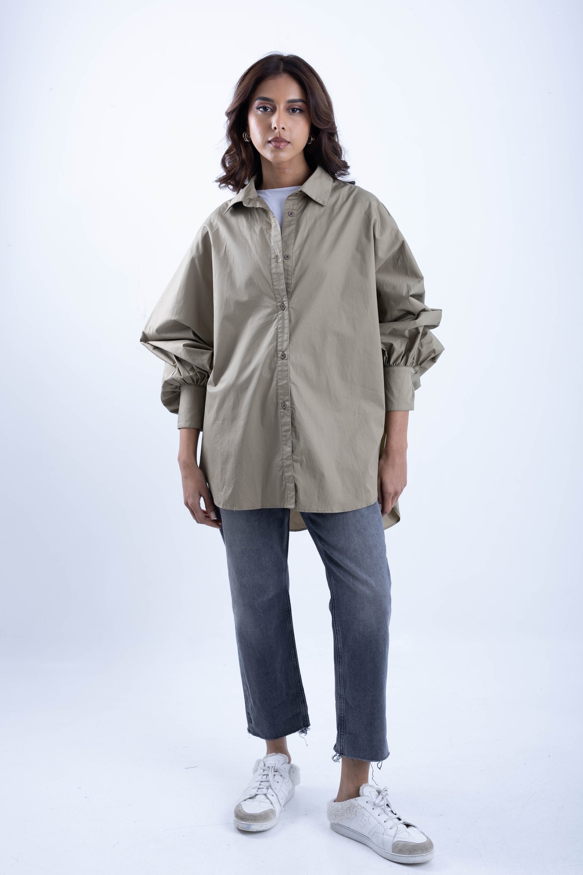Wide shirt with tight sleeves
